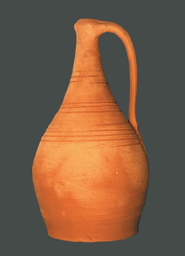 Den Daumen drauf – Physik mal ganz anders. Replik einer mittelalterlichen Gießkanne aus rotbrennendem Ton; Keramik, nach einem archäologischen Fund der Lüneburger Altstadtgrabung klein: Höhe ca. 20 cm